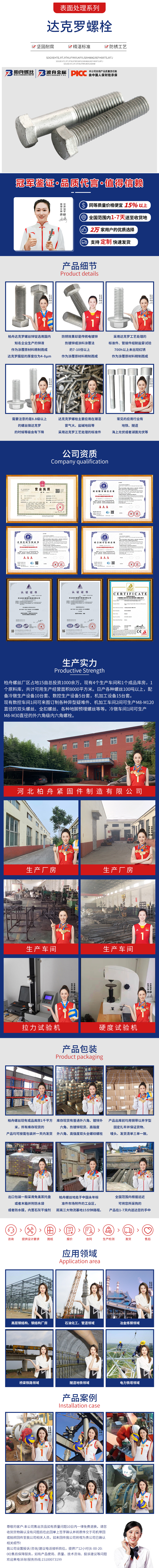 產(chǎn)品介紹: 柏舟達克羅螺絲鋅錠選用國內(nèi)知名企業(yè)生產(chǎn)的鋅液作為涂覆原材料精制而成,達克羅膜層的厚度僅為4-8μm,但其防銹效果卻是傳統(tǒng)電鍍鋅、熱鍍鋅或涂料涂覆法的7-10倍以上。采用達克羅工藝處理的標(biāo)準(zhǔn)件、管接件經(jīng)耐鹽霧試驗700h以上未出現(xiàn)紅銹。達克羅表面優(yōu)點是做鹽霧試驗可以達到小時最長的一種表面處理。