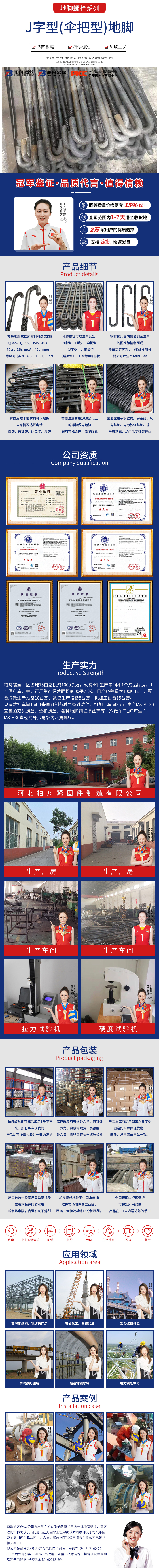 產(chǎn)品介紹:柏舟地腳螺栓原材料可選Q235、Q345、Q355、35 、45 、40cr、35crmoA、42crmoA,等級可選4 8、8 8、10 9、12 9。地腳螺栓可以生產(chǎn)L型、9字型、T型頭、傘把型(J字型)、錨板型(錨爪型)、U型等8種形狀。鋼材選用國內(nèi)知名鋼企生產(chǎn)的圓鋼加精制而成,質(zhì)量穩(wěn)定可靠,地腳螺栓部分材質(zhì)可以生產(chǎn)A型和B型。有防腐技術(shù)要求的可以根據(jù)自身情況選擇電鍍白鋅、熱鍍鋅、達(dá)克羅、滲鋅。